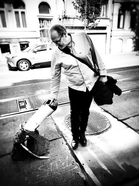 Richard Fordeyn was een soort surrogaatpapa voor mijn broer en mij. Vanaf onze jonge tienerjaren. Hij droeg op zijn manier zorg voor ons. Richard was gene gewone. Het was zijn pioniersjob de basis te leggen voor het informaticasysteem van onze sociale zekerheid. Dat deed hij met verve maar toen wij hem kenden werd hij eens gevraagd te helpen met een probleem in dat basissyteem (waar in de loop de jaren verder werd op gebouwd) en wist hij er niets meer van. Alles wat elektronica was weerde hij. Hij kon zelfs geen geld uit de muur meer halen. Zijn briljante maar verstoorde geest had zich op schilderen en etsen, politiek, vrouwen en onnavolgbaar bridge spelen gestort. De rest kon hem gestolen worden. Toen hij stierf werden zijn spullen verdeeld onder al wie hem lief had. Ik koos vooral kunstboeken en tekeningen. Er was ook een gekruisigde Christus waarover hij op de kop zijn pasfoto had gehangen. Met momenten zag hij zijn leven ook als een lijdensweg.